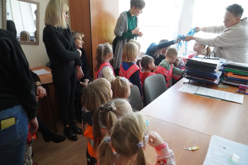 Ponadto w ramach zwiedzania urzędu dzieci wspólnie z nauczycielkami odwiedziły kilka kluczowych wydziałów. W Wydziale Komunikacji i Transportu naczelnik Dariusz Zarychta pokazał, jak wygląda prawo jazdy i gdzie się je odbiera, a także jak wyglądają tablice rejestracyjne różnych pojazdów i kiedy się je otrzymuje. W Wydziale Ochrony Środowiska, Rolnictwa i Leśnictwa naczelnik Ewa Pandyra zobrazowała zakres działalności wydziału oraz opowiedziała o działaniach na rzecz ochrony środowiska oraz jak istotną rolę w tym procesie odgrywa człowiek. Natomiast w Wydziale Architektury i Budownictwa naczelnik Jolanta Janowska pokazała przedszkolakom jak wyglądają projekty domów i budynków na budowę, których starostwo wydaje pozwolenia. Dzieciaki z przejęciem i zaciekawieniem oglądały dokumentację projektową, a nawet deklarowały, że w przyszłości będą architektami i budowniczymi.